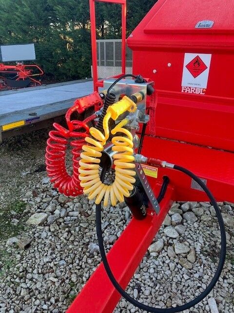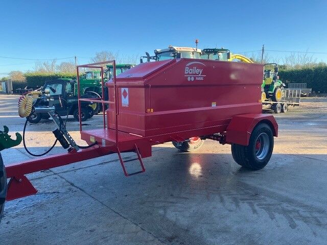 New Bailey Fuel Bowser in red, plastic mudguards with flaps, 220ltr ad blue tank, 10mtr retractable hose with auto gun, 85L/min fuel pump, commercial axle, air brakes, 2000ltr tank.