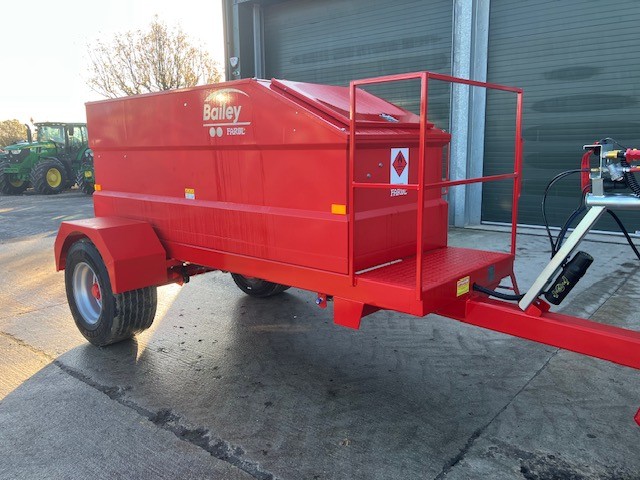 | Price: | £11,250.00 (ex VAT) | Spec: | New Bailey Fuel Bowser in red, plastic mudguards with flaps, 220ltr ad blue tank, 10mtr retractable hose with auto gun, 85L/min fuel pump, commercial axle, air brakes, 2000ltr tank. |
