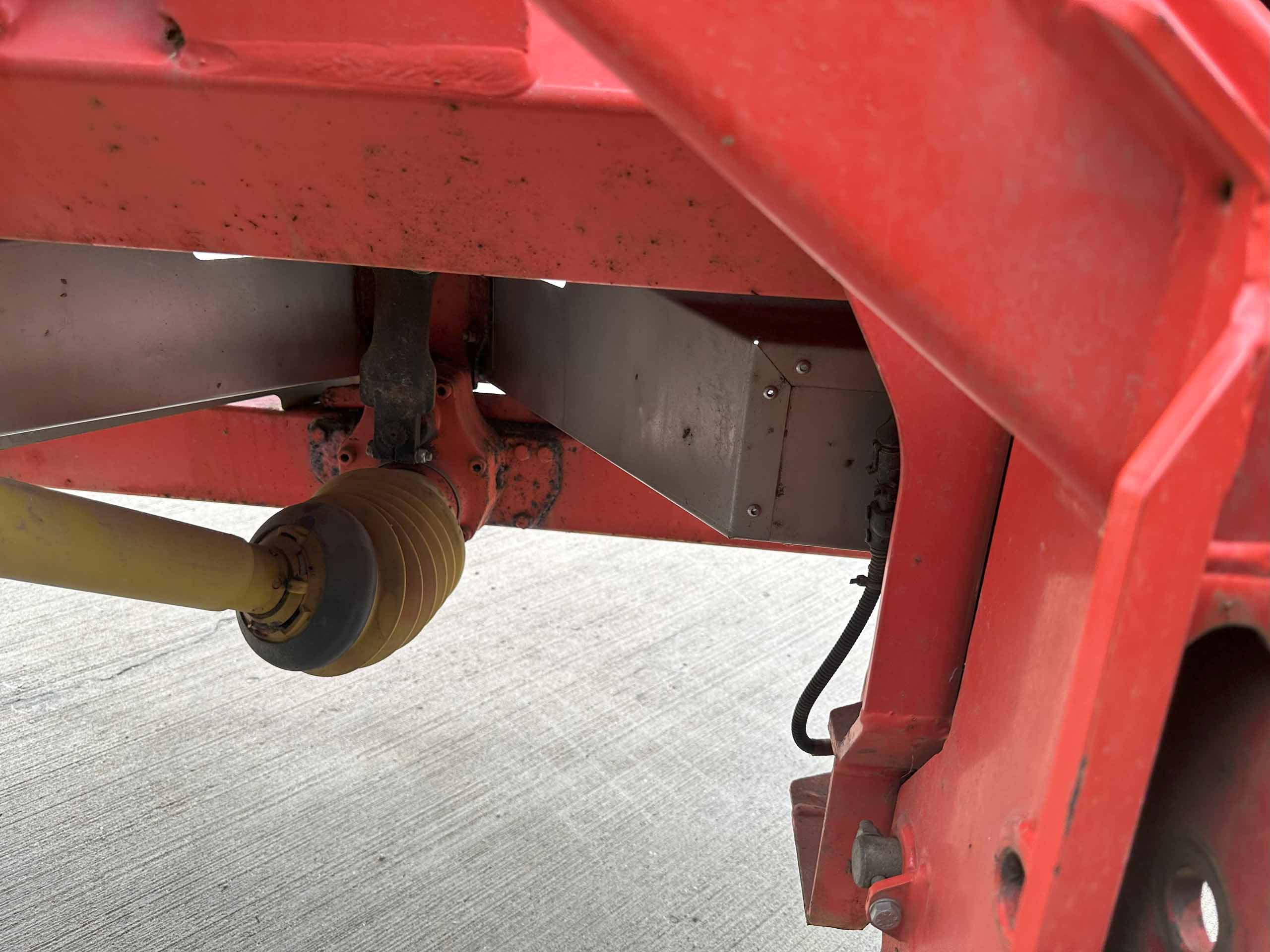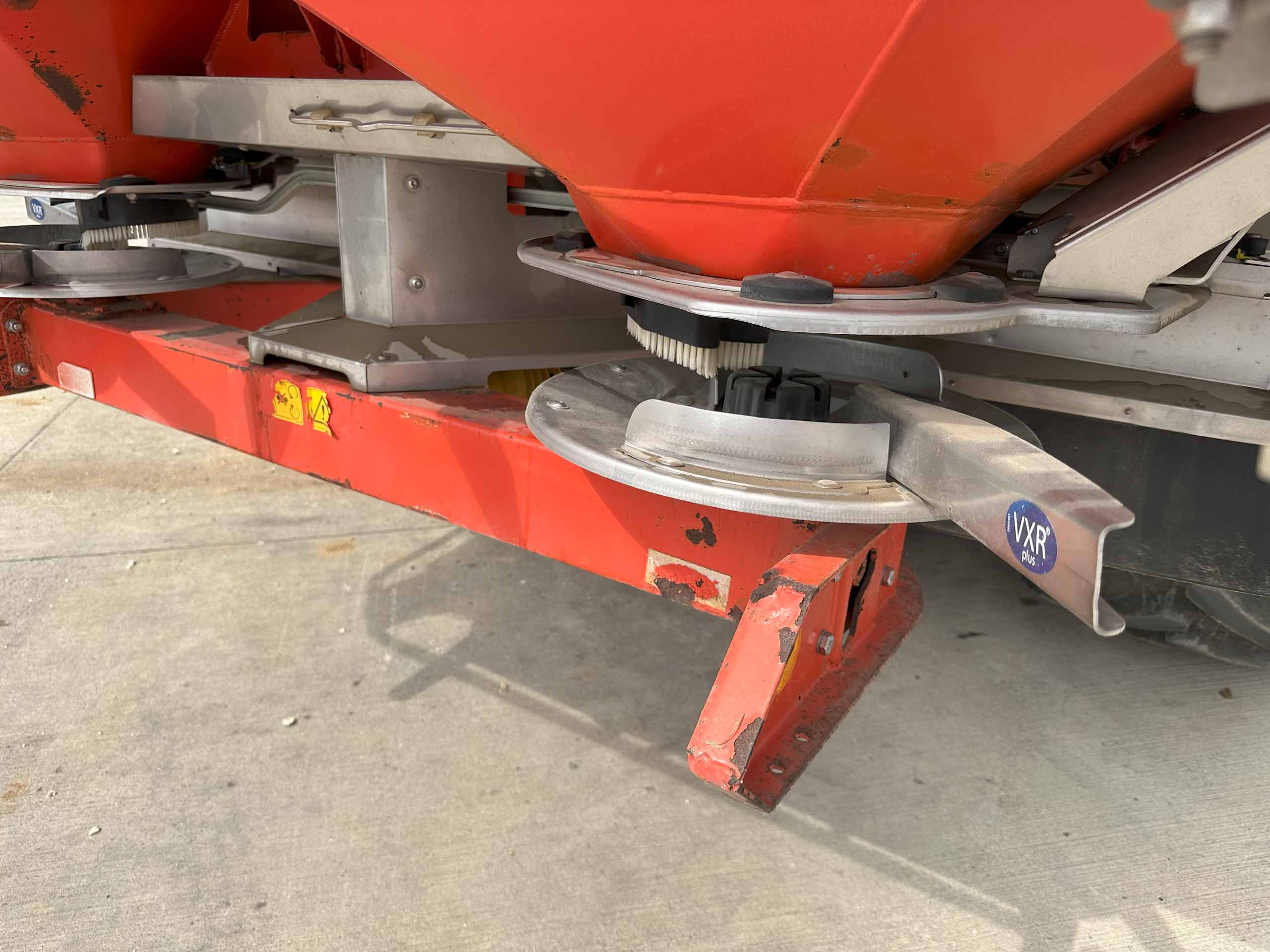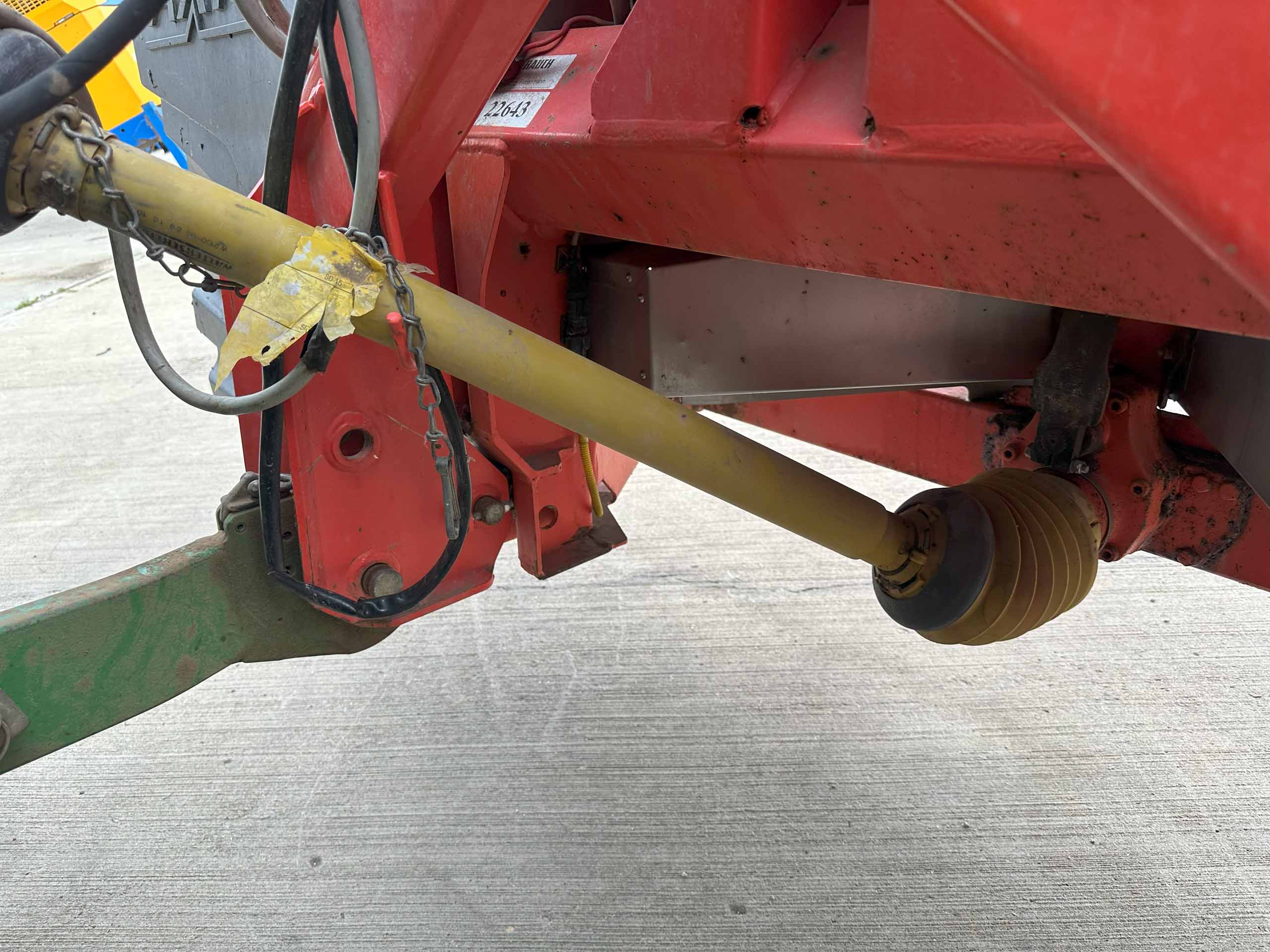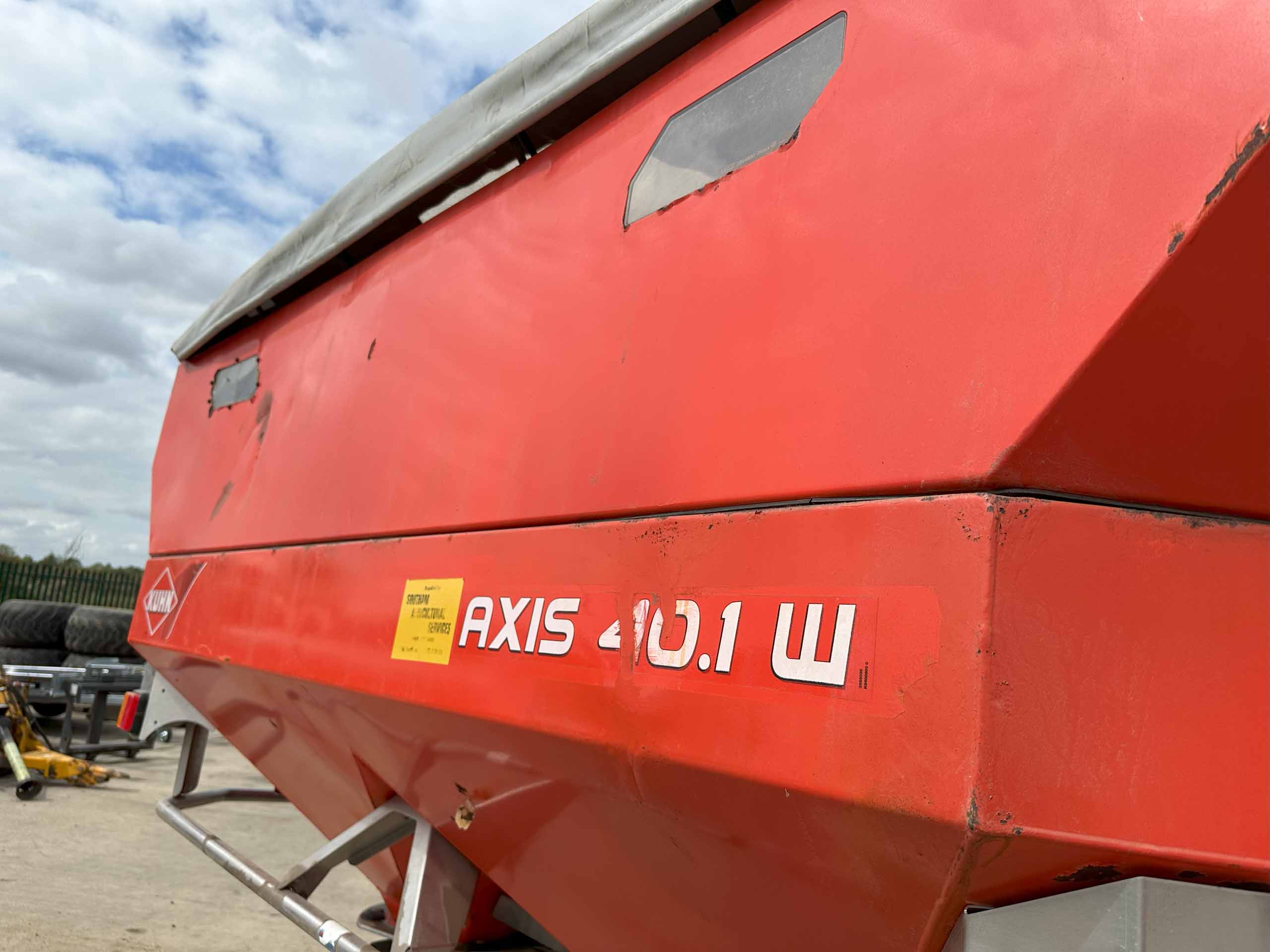 2009 fertiliser spreader, S8 discs, 30-36 metres spreading width, weigh cells, pto drive, 8657 hectares, hopper cover, road lights. Dent on the back.