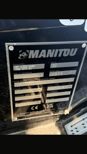 2023 MANITOU MT1335 TELEHANDLER, HAS LOLER CERTIFICATE, 526 HOURS, STABILISERS, MAX LIFT CAPACITY 3500KG. FORKS AND BRICK GUARD.