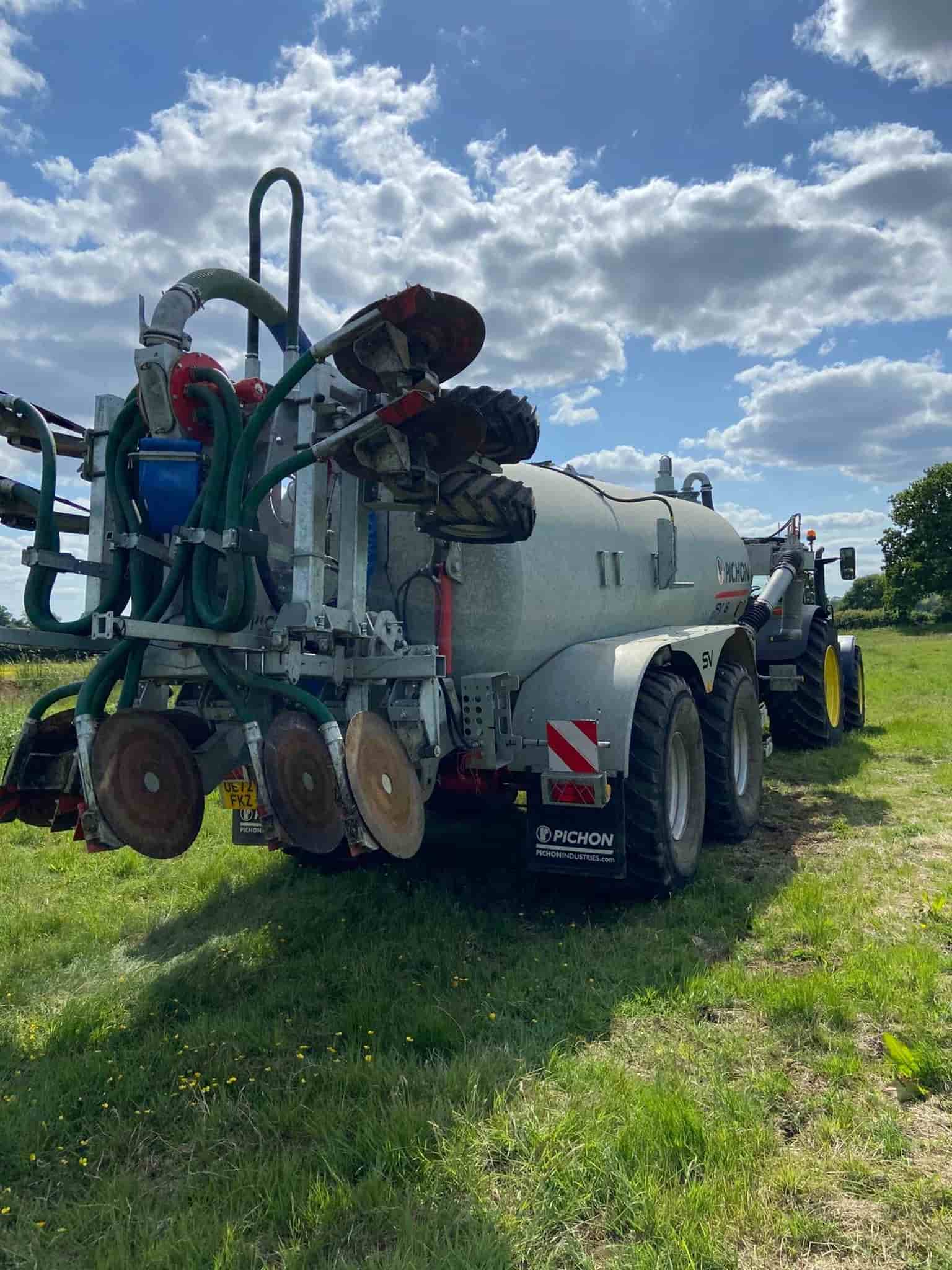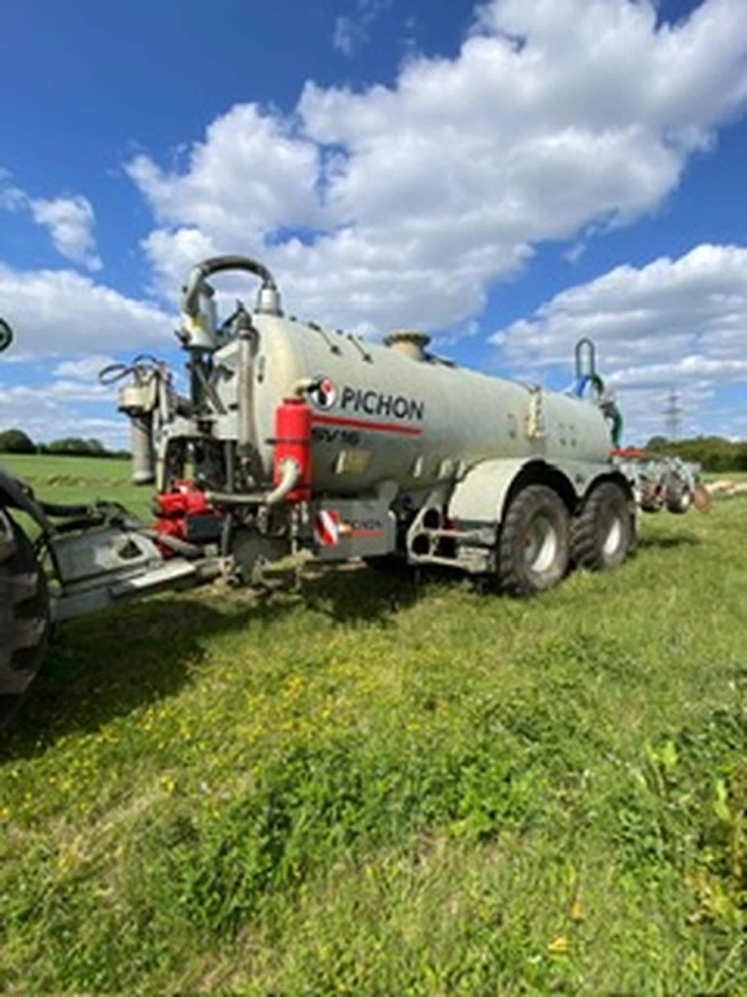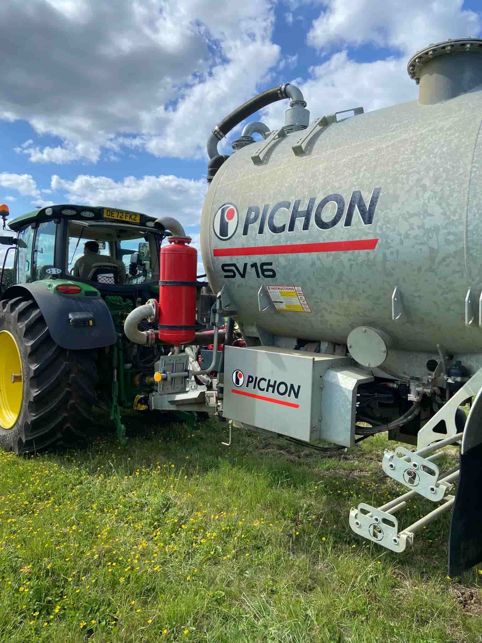 SV16 pichon tanker 2022, Tandem axle rear steer 650/65/26.5, Air/hydbrakes, Sprung drawbar, Icontol 7S BP2 arm with turbo 8inch filler, Hyd sand agitor, Hydraulic rear linkage, K80 ball, C/w EL71 flat disc injector, Galvanised, 4m -40cm space , 50 hoses, 5-10cm adjustable. **For sale on behalf of customer please call Tom: +44 7971 831809**