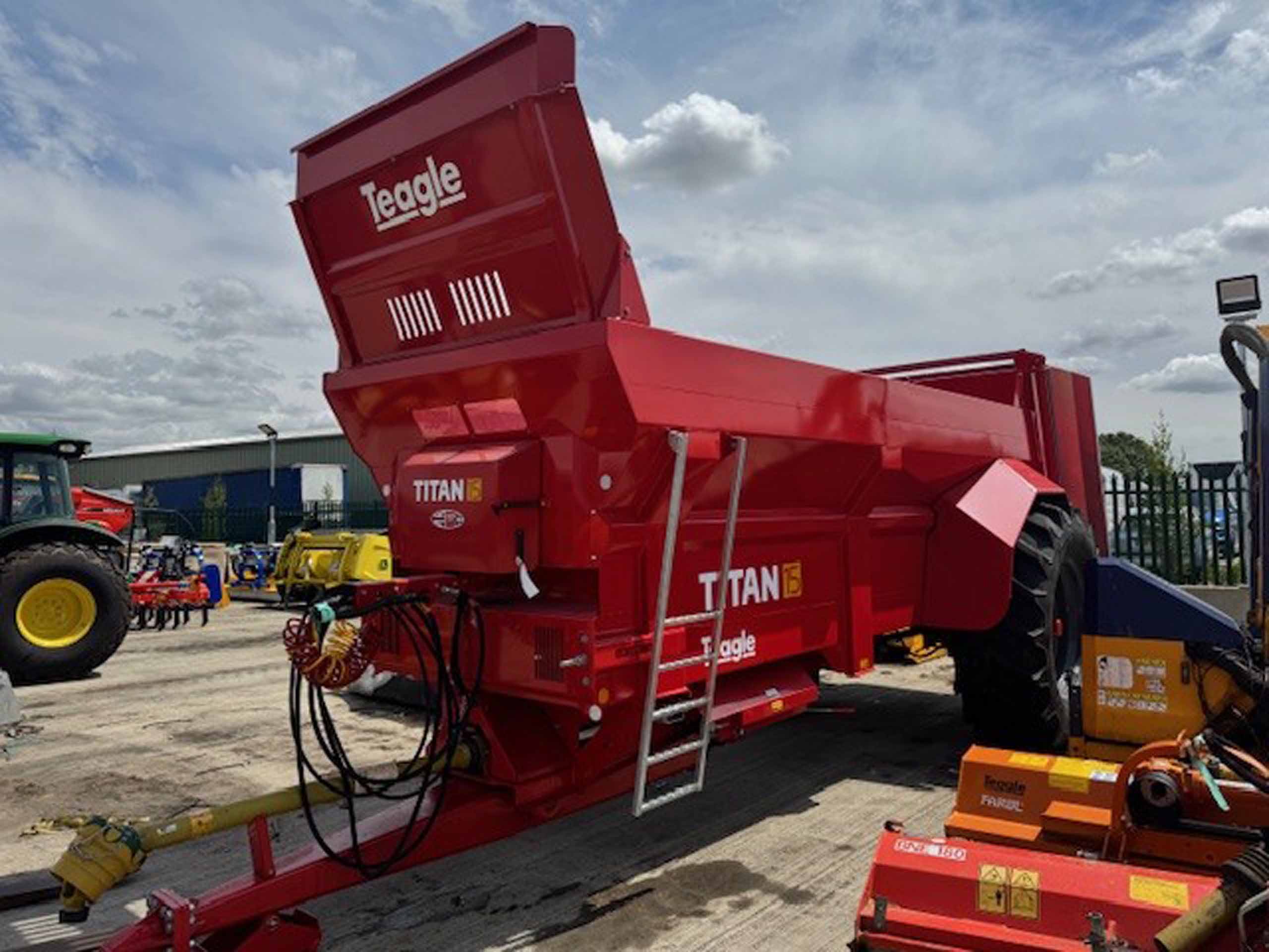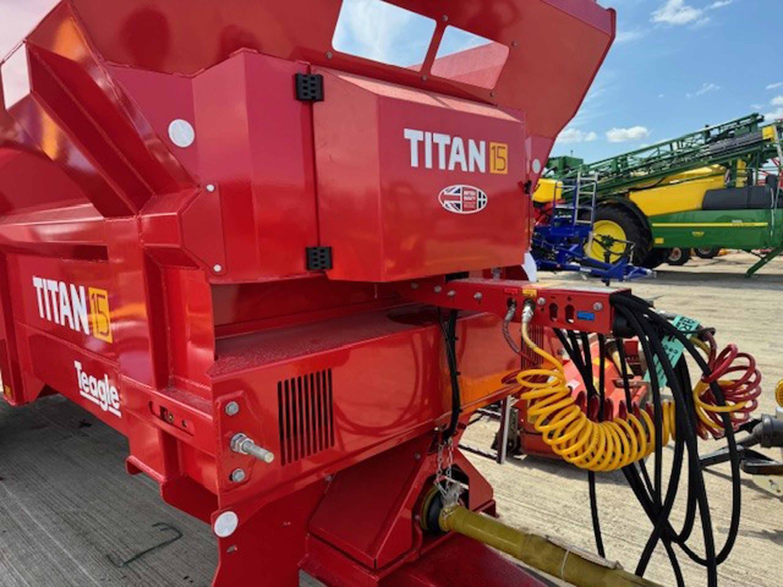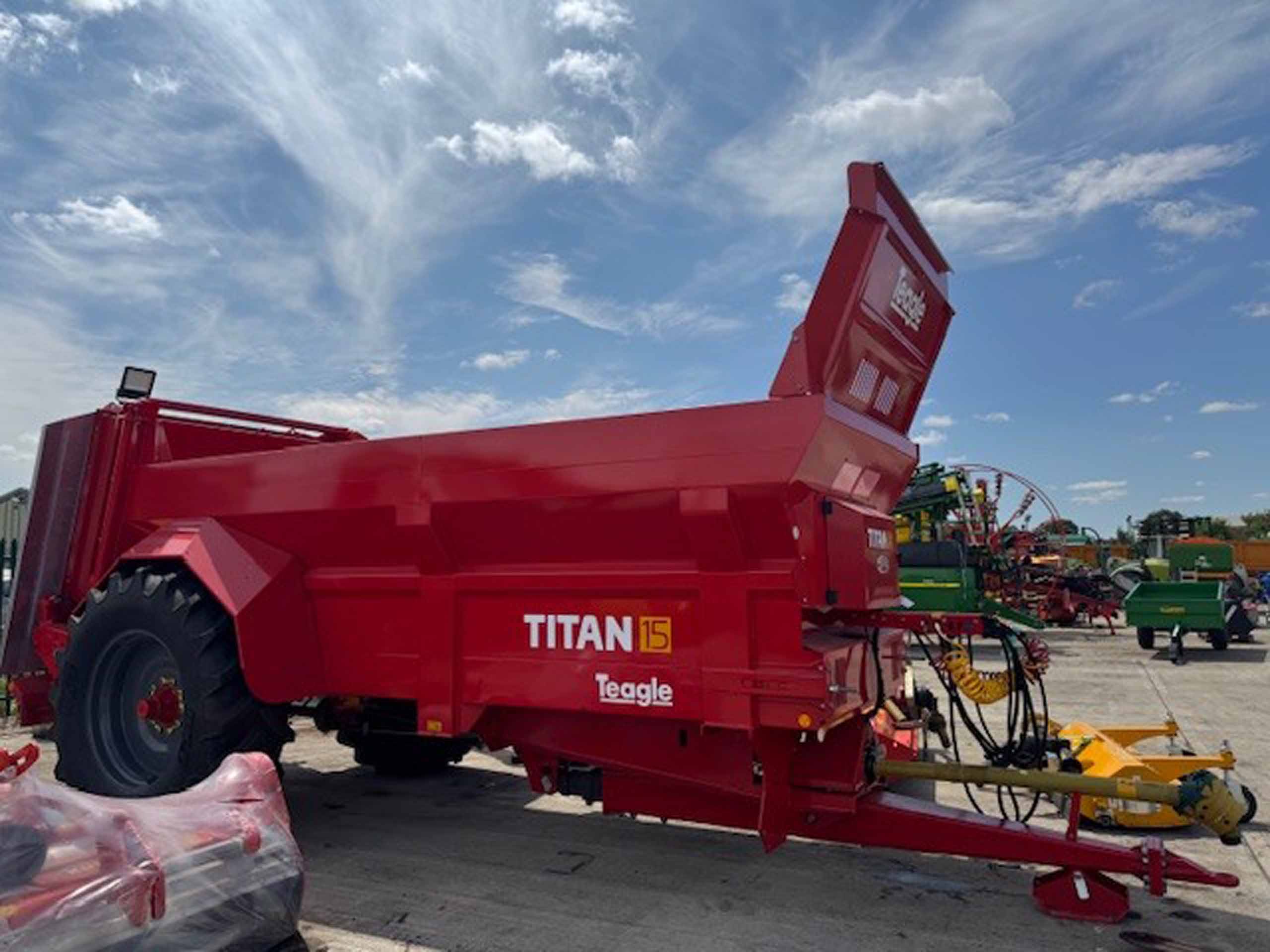 New 2025 Teagle Titan 15 muck spreader, Pro range, 15.4m3 cube capacity, rear discharge muck spreader, LED lights, 18mm bed chain, Boron steel beaters, sprung drawbar, 580/70R38, commercial axle, hyd/air brakes, Wide angle PTO, mudguards, 1000 PTO, 2.51mtr loading height, 900mm rotor diameter, 6280kg unladen.