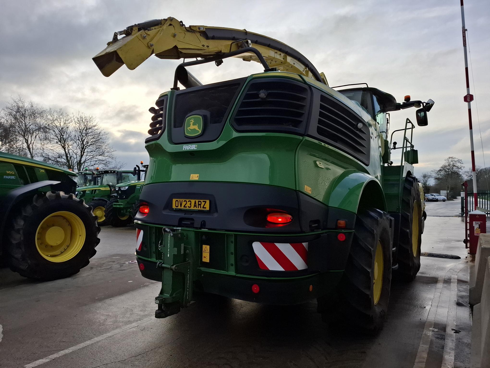 | Price: | £249,950.00 (ex VAT) | Spec: | 2023, 1575 engine hours, 1025 cutterhead hours, ProDrive 40K, 18litre engine (No Ad Blue), 64 knife drum, Xtreme KP - Maize sawtooth 50% speed differential, 12 row Maize extension, harvest lab 3000 with grass and Maize activations, 4640 screen, 30R grass header, high volume and low volume additive system, full leather cab package, A/C, Premium leather air seat, Premium lighting package, VF710/75R42 620/70R30 tyres, automatic spout positioning, spout camera, refrigerator, stone deflector, stone detection system, crane for KP removal, air compressor package, chrome exhaust pipe, air horn, LED beacon lights, Road registered: 01/03/2023. Built: 07/12/2022. **SF6000 Dome not included but are available separately as well as other models SF7000/SF7500** |