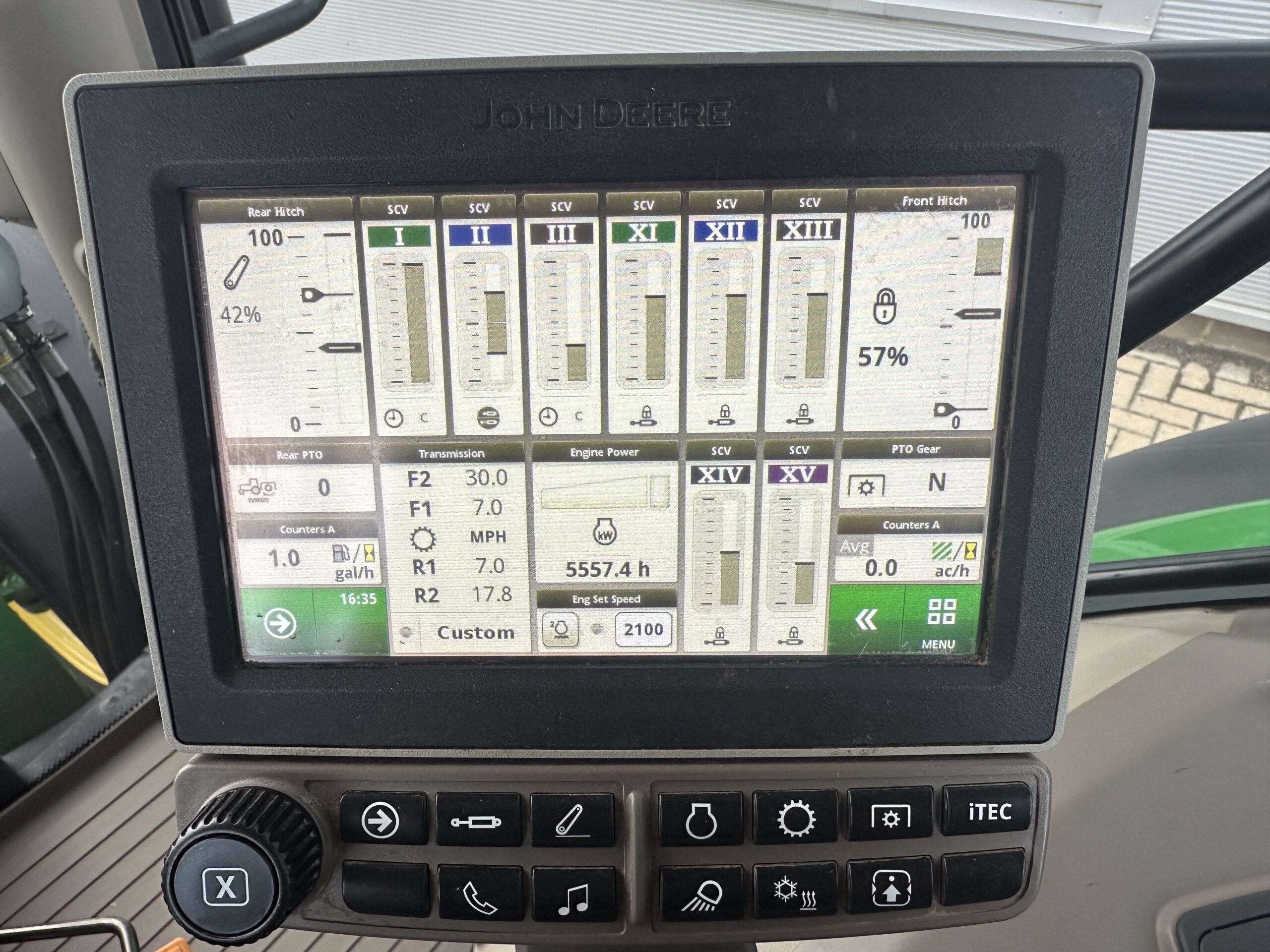 | Price: | £49,950.00 (ex VAT) | Spec: | 2017, 5560hrs, AutoPowr, 50K, TLS, HCS, 114L hyd pump, 3ESCV, front linkage + PTO W/2ESCV, PUH, air/hyd brakes, 4100 screen, power beyond prep, Premium air seat, A/C, JD loader ready (No boom), Michelin Tyres 520/85R38 16.9R28. |