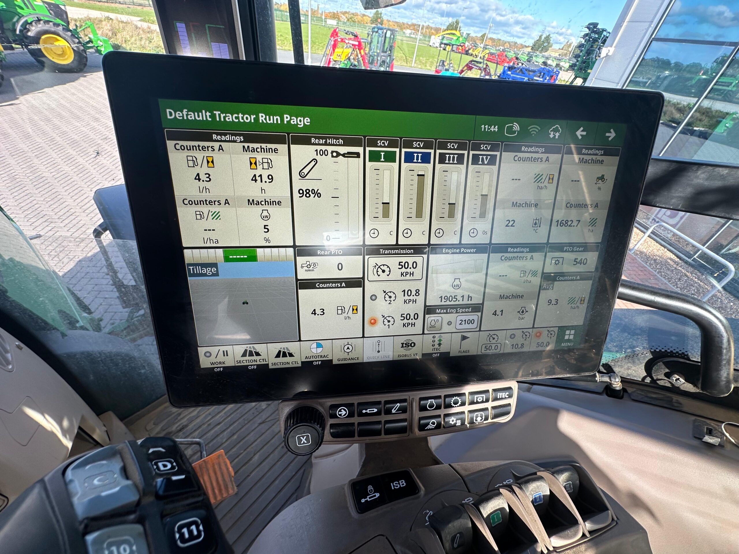 EX HIRE, 2024, 1915hrs, AutoPowr CommandPro, 50K, G5 Plus Command Centre, AutoTrac Ready, Activations, Dual Motion air seat, A/C, TLS, HCS, 4ESCV, 155L/min hyd pump, Additional hyd oil reservoir, compressed air supply socket, heated rear window, rear hyd fender controls, Power beyond prep - rear, Hyd IPM, roof hatch, Ultimate LED Light package, air/hyd brakes, Michelin MachXbib 600/70R28 650/85R38, Road Registered: 26/03/2024, October 2023 Build, has had 1500hr major service, front weight not included. **Compressive PG Warranty: 04/04/2027 - 3000hrs, Ex Hire John Deere Subsidised Finance, 1+2 Annuals based on 60% of selling price @1.5% flat p.a, UK Customers only, T&C's Apply**