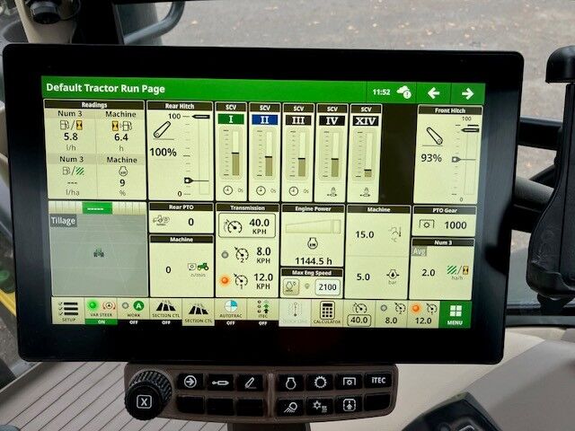 2024, 1145hrs, AutoPowr CommandPro, 50K, G5 Plus screen, AutoTrac Ready, TLS, HCS, Premium seat, A/C, 4ESCV with electric joystick controls, 195L/min hyd pump, Hyd IPM, hyd top link, front linkage + PTO W1/ESCV, roof hatch, compressed air supply socket, cooling compartment, Power beyond prep - rear, air/hyd brakes, ABS, Rear wheel weights, Ultimate LED Light Package, electric adjustable mirrors, leather wrapped steering wheel, laminated windscreen, variable ratio steering, automatic stabiliser bars, Ultimate LED light package, 600/70R30 710/70R42. **PG Comprehensive Warranty: 05/07/2027 - 3000hrs** Road Registered: 04/07/2024, April 2024 Build.