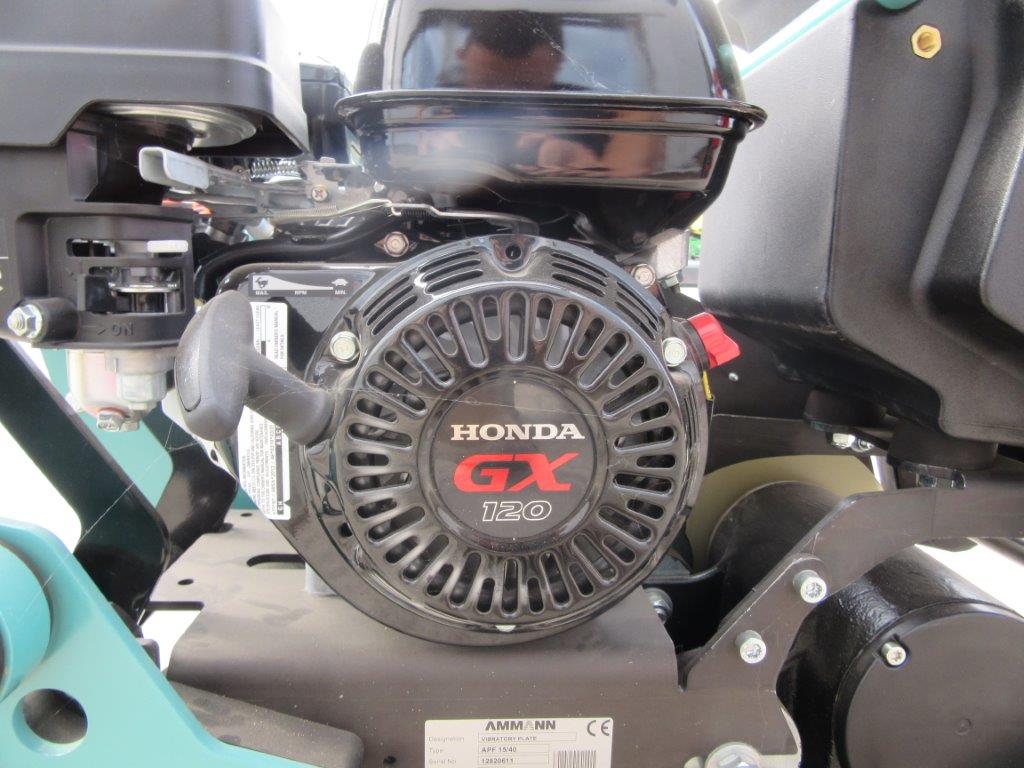 Amann APF15/40 vibratory plate, Honda GX120 4HP petrol engine, ultra low vibration, 400mm working width, Foldable handle. Wheel Kit & Water Kit Extra.