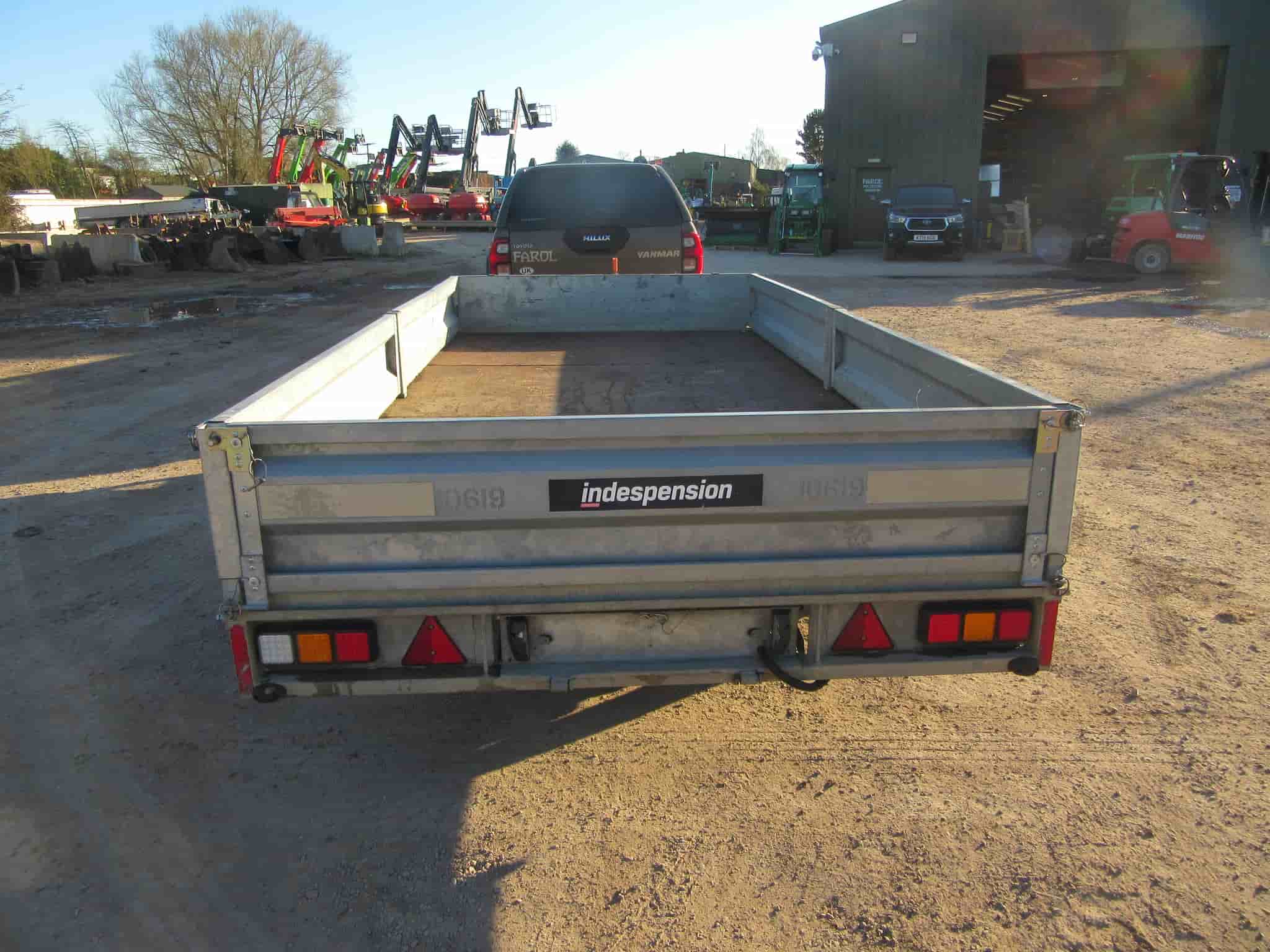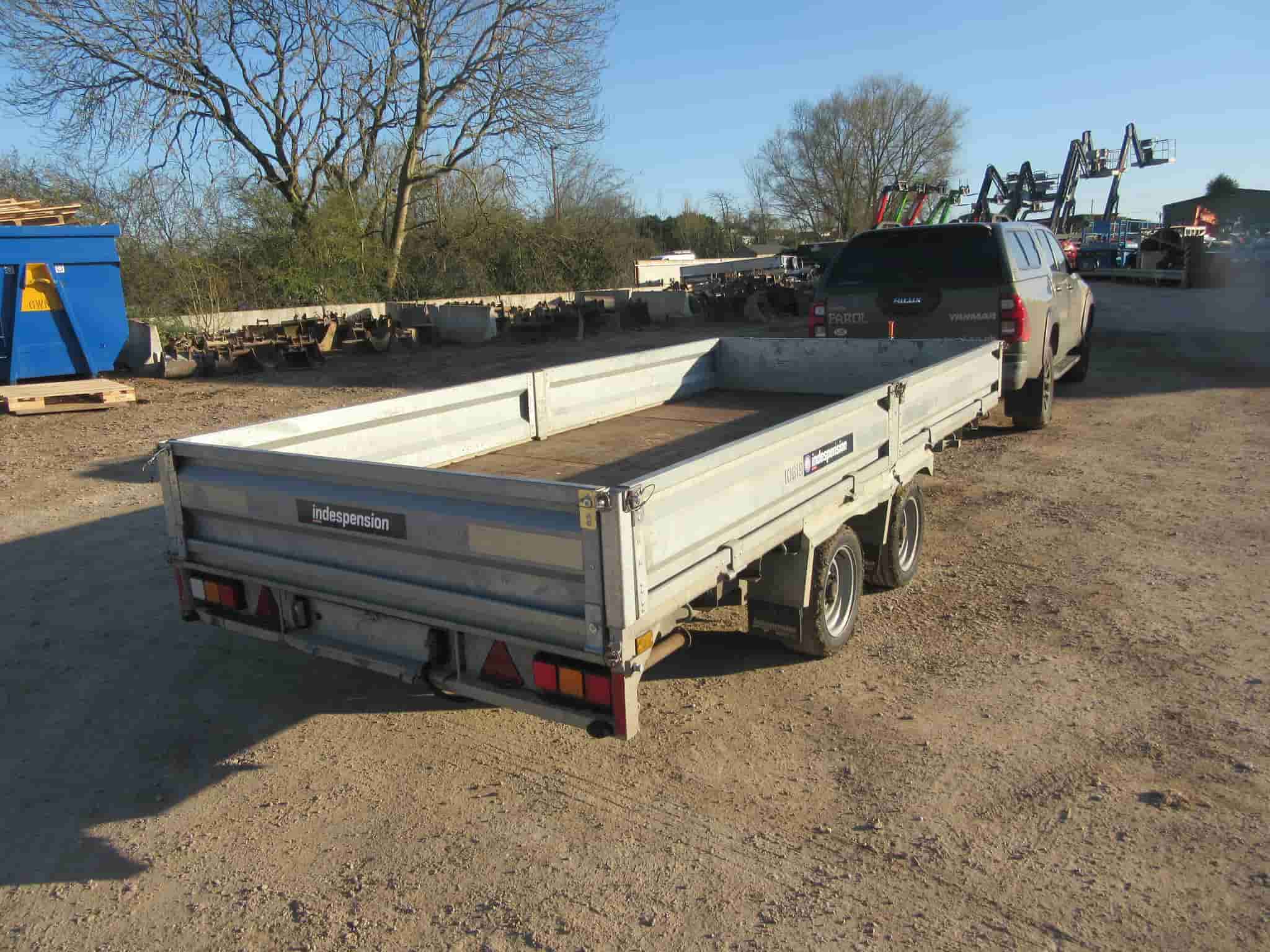2022 INDESPENSION FTL35146 FLAT BED TRAILER, 14' X 6'6" FULLY GALVINSED TWIN AXLE TRAILER, DROPSIDES INCLUDING HEADBOARD, STEEL RAMPS, LIGHTS, 3500KG GROSS.