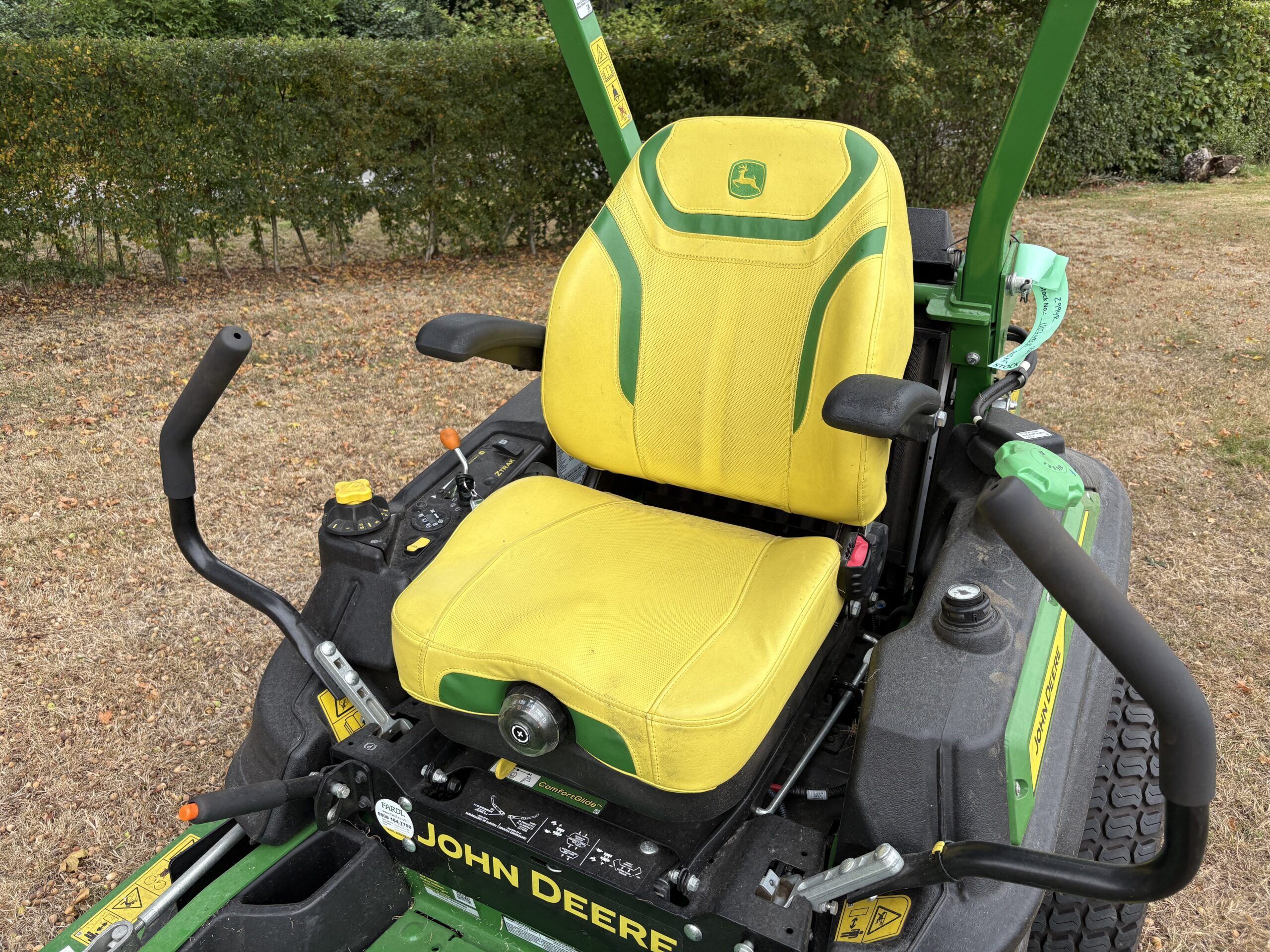 Used John Deere Z994R complete with 60 inch rear discharge deck fitted with work lights & Amber beacon. Diesel Power Meets Zero-Turn Precision. When productivity, durability, and comfort matter most, the John Deere Z994R delivers. This commercial-grade zero-turn mower is powered by a 24.7 hp liquid-cooled diesel engine, built to tackle large areas with ease and efficiency. Its 11.5-gallon fuel tank ensures fewer stops and more mowing time, while the dual hydrostatic drive system provides smooth, responsive control across varied terrain. Choose from 54", 60", or 72" 7-Iron™ PRO mower decks, including Mulch On Demand™ and FastBack™ rear-discharge options, all designed for superior cut quality and versatility. The Z994R’s ComfortGlide™ suspension seat, adjustable armrests, and low-vibration design keep operators comfortable through long shifts. Optional Michelin® X® Tweel® Turf airless radial tires eliminate downtime from flats and enhance ride quality and traction. With a heavy-duty welded steel frame, offset caster wheels, and steel rear bumper, the Z994R is built to withstand the rigors of commercial mowing. John Deere Z994R – Built for the Toughest Jobs. Designed for the Best Cut.