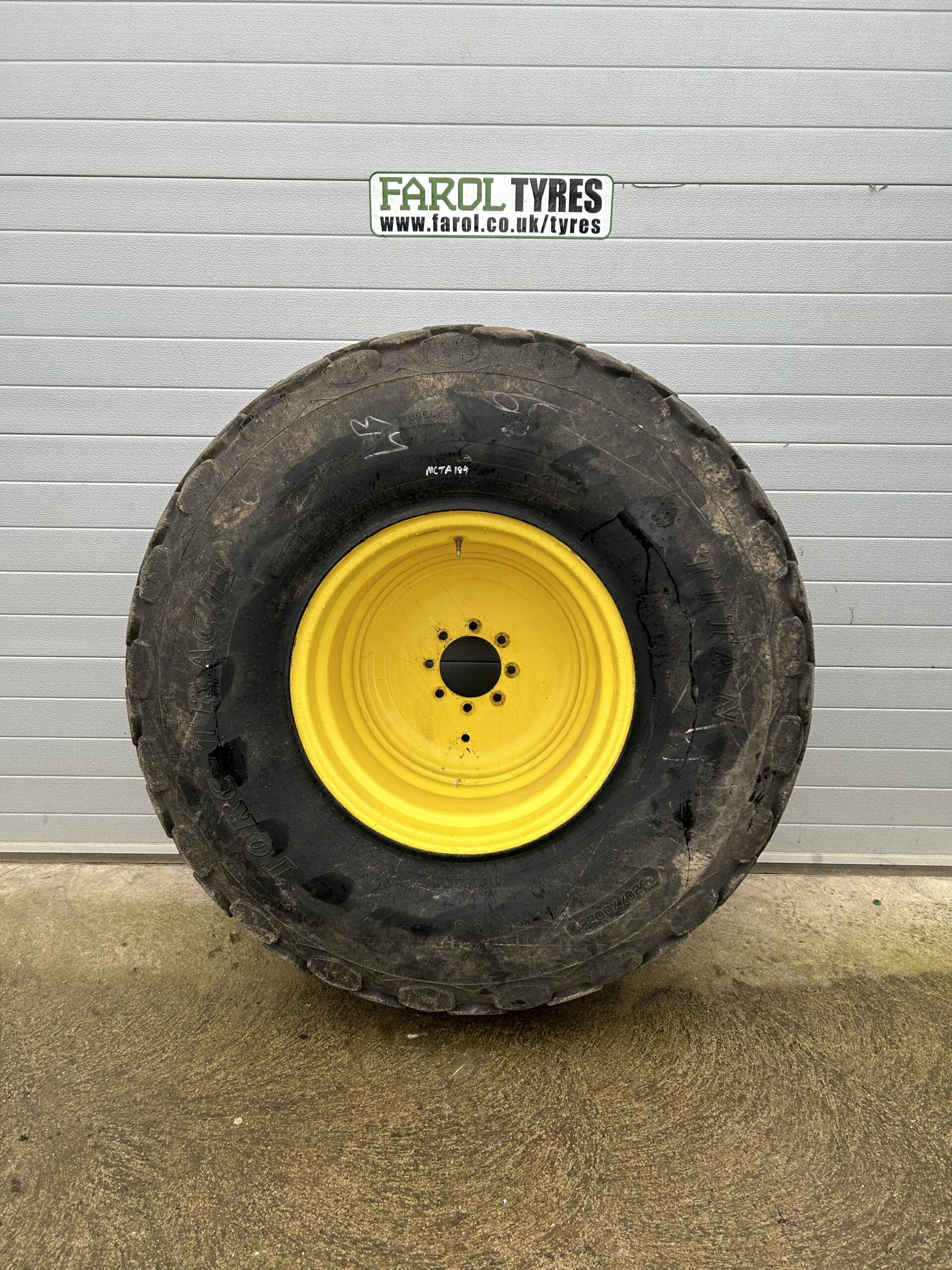 Titan Trac II, 620/70X26 (23.1X26), Part worn tyre, 90% Tread left, Rim Size 20X26, 8 Studs, 190mm, 150mm, Solid rim, Rim not included POR